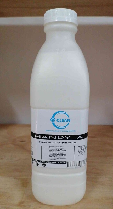 Handy A is a powerful ammonia-based multi-surface cleaner formulated to tackle tough grime, grease, and carbon deposits. With its light scouring action and deep-cleaning ability, it effortlessly removes fat, light oil, carbon build-up, and other contaminants from walls, floors, ceramics, tiles, and hard surfaces. Ideal for kitchens, workshops, restrooms, and general-purpose industrial or commercial cleaning.